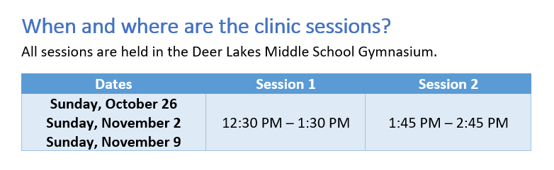 Deer Lakes Youth Basketball provides recreational and travel basketball opportunities for students in grades K-6. Clinics are provided for students in grades K-2, while recreational leagues and travel leagues are available for students in grades 3-6.